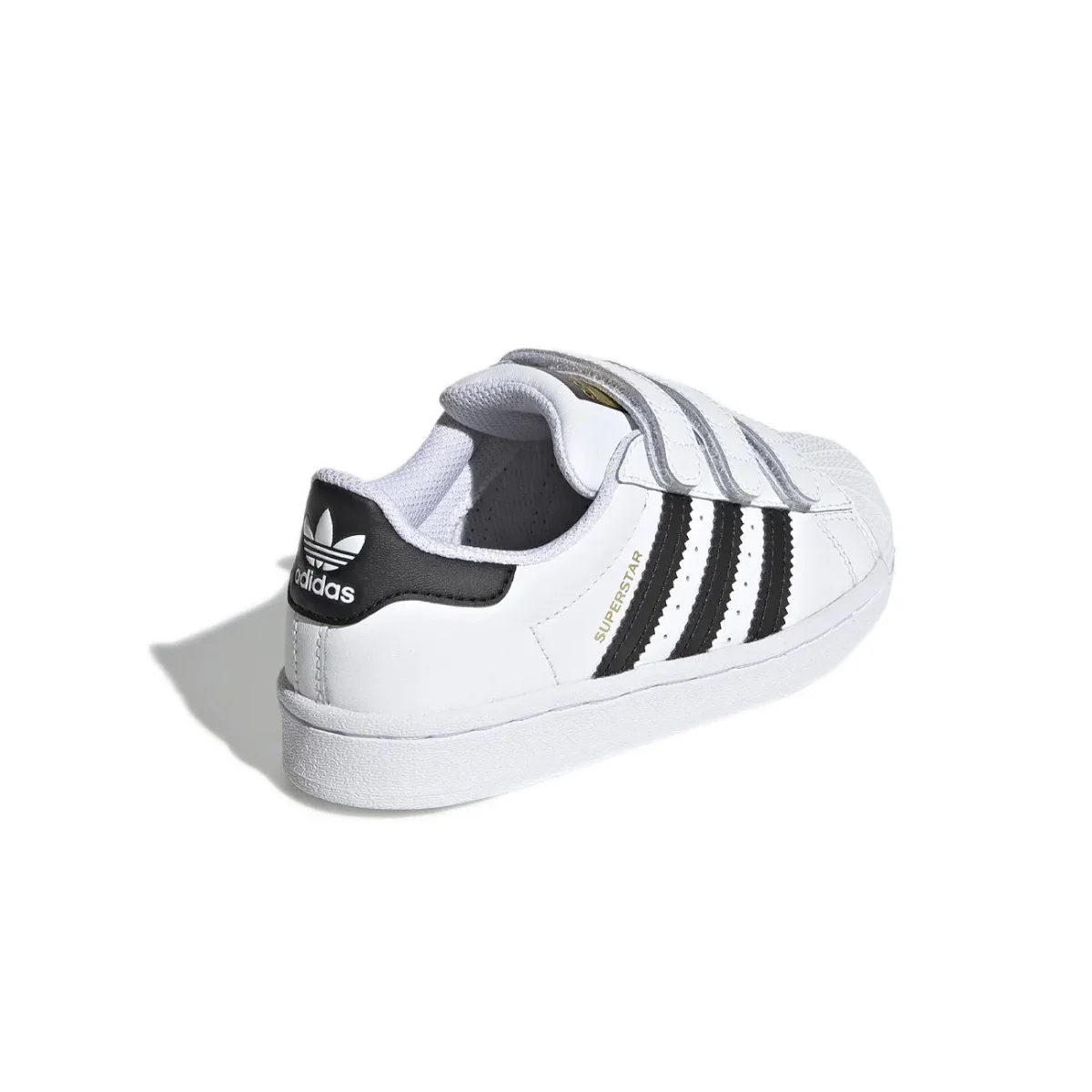 Sneakers KIDS – Modello: SUPERSTAR – Colore: BIANCO NERO Queste scarpe da bambino sfoggiano le stesse linee classiche del primo modello originale. Sono realizzate in morbida pelle. Una punta con guscio in gomma e una suola in gomma spessa rimangono fedeli all`autentico stile adidas Superstar.