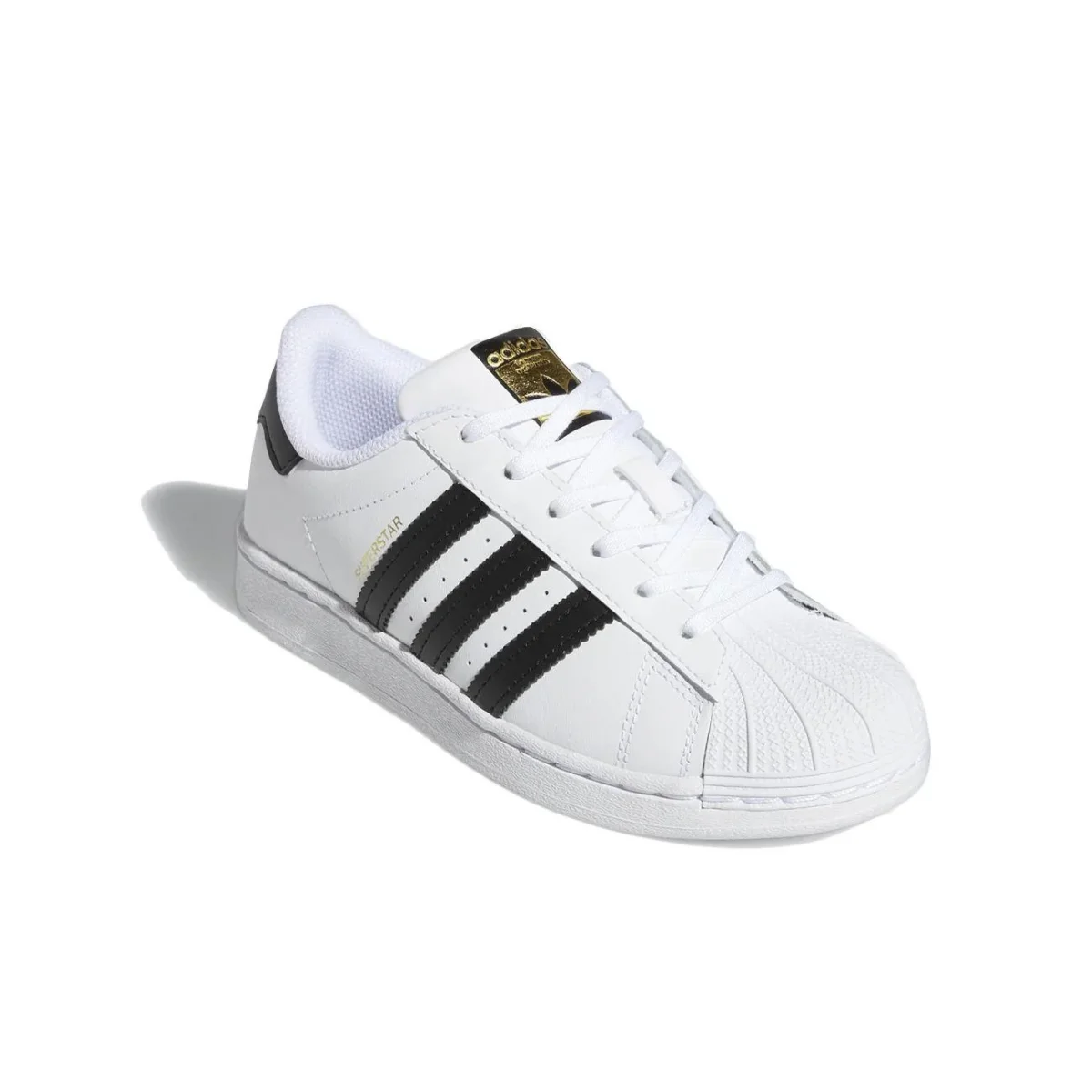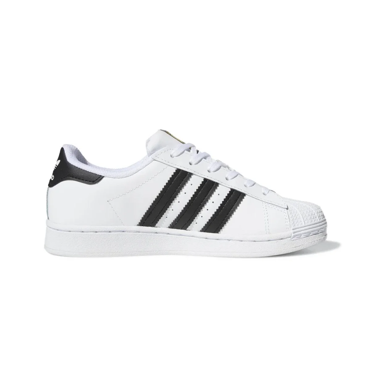 Sneakers KIDS – Modello: SUPERSTAR – Colore: BIANCO NERO Queste scarpe da bambino sfoggiano le stesse linee classiche del primo modello originale. Sono realizzate in morbida pelle. Una punta con guscio in gomma e una suola in gomma spessa rimangono fedeli all`autentico stile adidas Superstar.