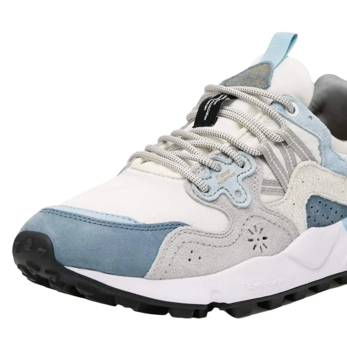 Sneakers UOMO – Modello: YAMANO 3 – Colore: CELESTE/BIANCO/GRIGIO Sneakers da uomo caratterizzata da tomaia in tessuto tecnico con inserti in suede, che presentano le iconiche traforature ispirate al fiore del tarassaco, e da un’allacciatura con occhielli rinforzati e stringhe trekking. Dotata di una soletta interna in sughero anatomica e antibatterica che assicura comfort e benessere, e da un fondo in gomma ultra leggera con sagomature laterali e battistrada dentellato. Queste caratteristiche la rendono una sneakers dalle forme sportive ma perfetta anche per look metropolitani!
