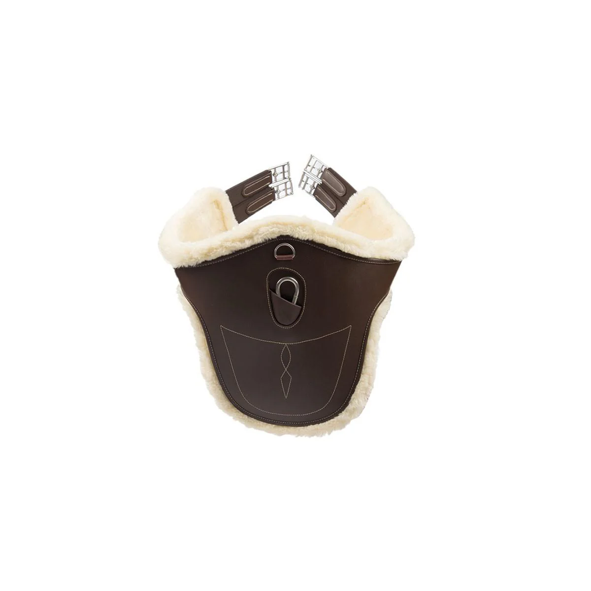 Sottopancia pararamponi Kentucky realizzato in resistente similpelle con imbottitura in EVA e soffice agnellino sintetico, completamente rimovibile grazie alla chiusura in velcro. Il profilo anatomico garantisce libertà di movimento, mentre la protezione extra protegge lo sterno e i lati dai ramponi senza comprimere eccessivamente. I tripli elastici rinforzati assicurano una pressione uniforme, e i D-ring laterali e centrale permettono il fissaggio di martingala o redini addizionali. Ideale per cavalli con pelle sensibile, l’agnellino sintetico può essere lavato in lavatrice a 30 °C per una manutenzione facile e prolungata durata