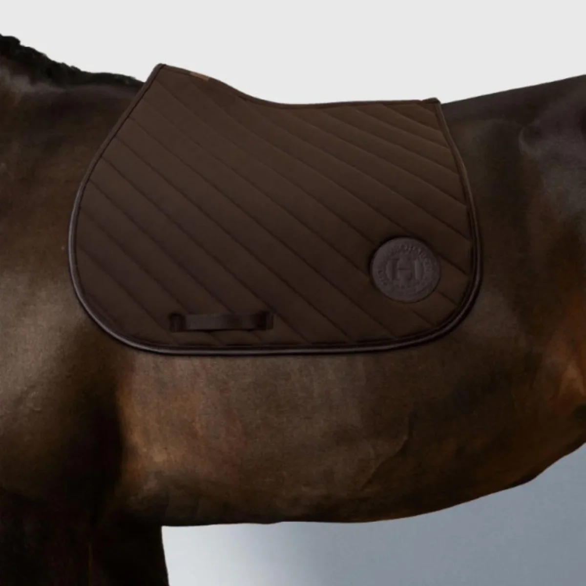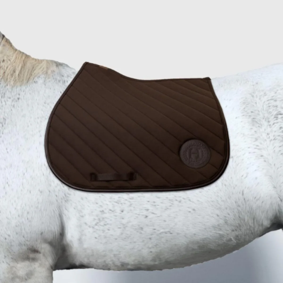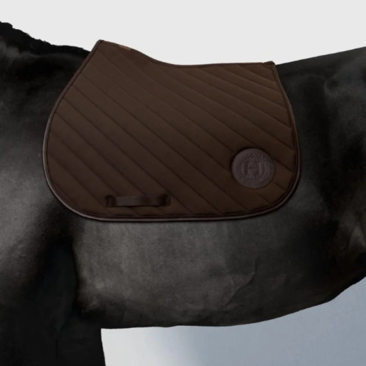Sottosella da salto elegante e pensato per adattarsi a tutte le morfologie di cavalli. Garantisce un’ottima vestibilità e stabilità ed è realizzato in materiale assorbente e traspirante per il comfort del cavallo: interno in cotone goffrato e imbottitura diagonale per un supporto ottimale. Il cordoncino tono su tono, i bordi in pelle, la toppa in similpelle Harcour all’altezza del garrese e il logo Harcour in pelle sul lato sinistro completano il design.