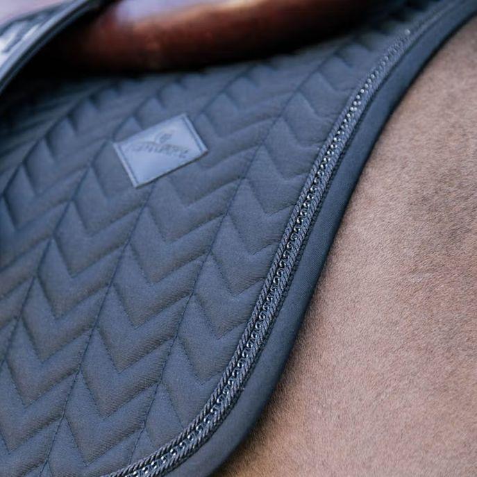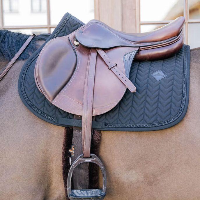 Il sottosella Metal Chain di Kentucky coniuga eleganza e funzionalità in un design distintivo. L’imbottitura a lisca di pesce assicura una distribuzione uniforme della pressione, migliorando il comfort del cavallo. Il tessuto tecnico altamente traspirante assorbe rapidamente l’umidità , mantenendo la schiena asciutta durante l’allenamento. La forma anatomica assicura libertà nella zona del garrese ed evita sfregamenti. Privo di cinghie per la sella, presenta solo una cinghia in nylon per il fissaggio al sottopancia. Il bordo è arricchito da una catena in metallo incastonata in un doppio profilo iridescente, per un look raffinato e contemporaneo.