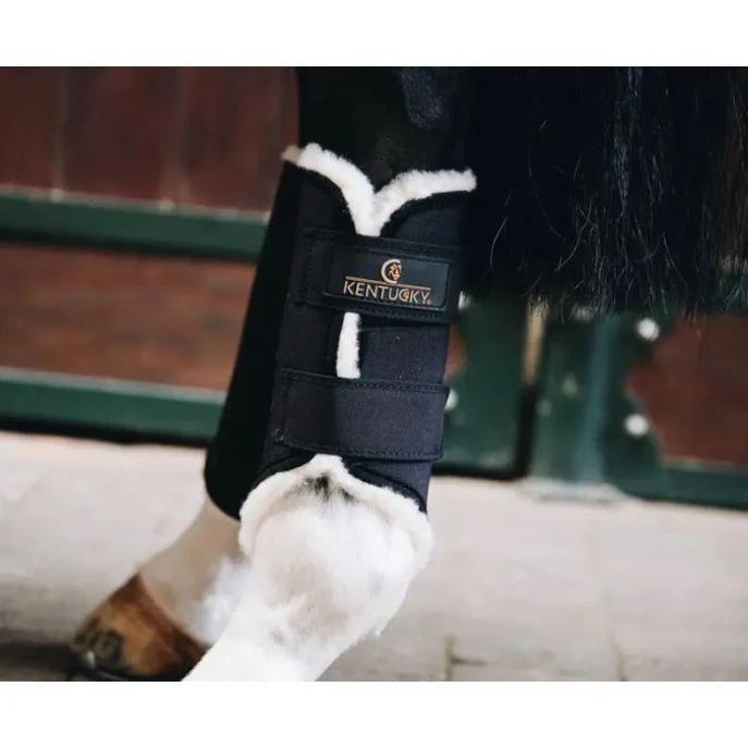 Stinchiere per gli arti posteriori realizzate in robusto tessuto Solimbra, impermeabile al 100%, e agnellino sintetico nella parte interna. Traspirabilità al 100%. Perfettamente anatomiche, presentano una chiusura con due cinghie in velcro. Ideali per cavalli con pelle sensibile.
