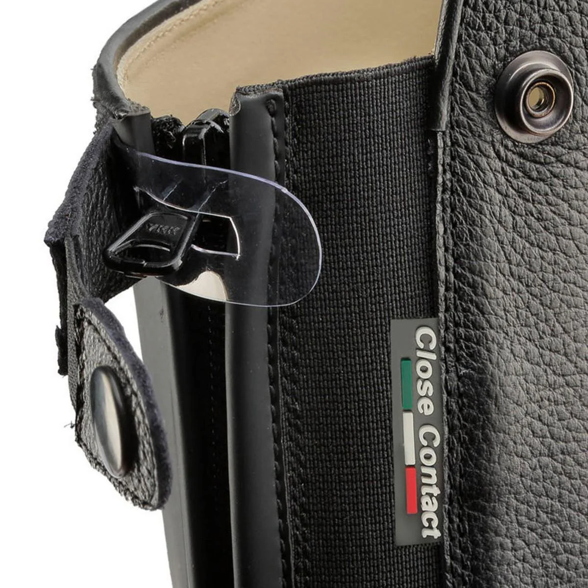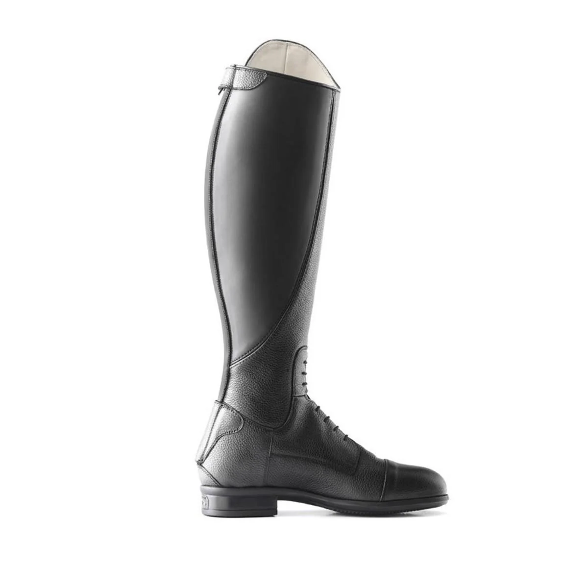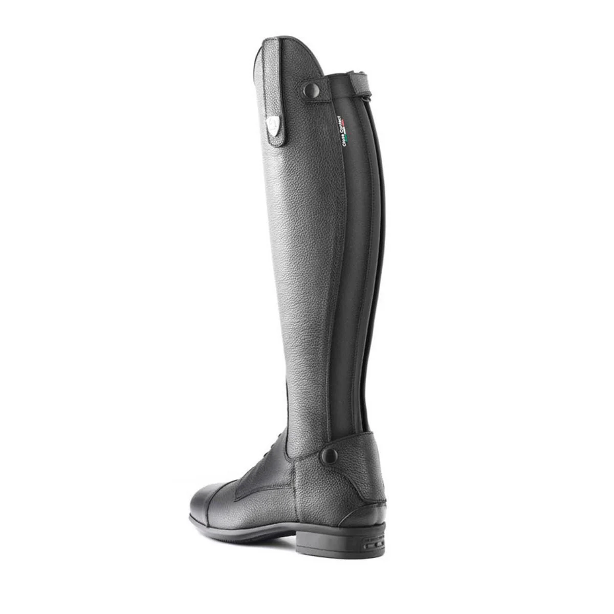 Lo stivale da equitazione Breton Close Contact di Tattini rappresenta un’eccellenza tecnica per cavalieri esigenti. Realizzato in pregiata pelle bovina pieno fiore con grana martellata, offre resistenza e flessibilità . L’esclusivo sistema “Close Contact” con suola arrotondata nella parte interna consente un contatto più diretto con la sella, migliorando l’assetto e la sensibilità dell’aiuto. Il gambale anatomico con fascia elastica posteriore garantisce comfort e aderenza ottimale al polpaccio. La cerniera YKK posteriore con protezione al tallone e i lacci anteriori elasticizzati assicurano una calzata personalizzata e pratica.