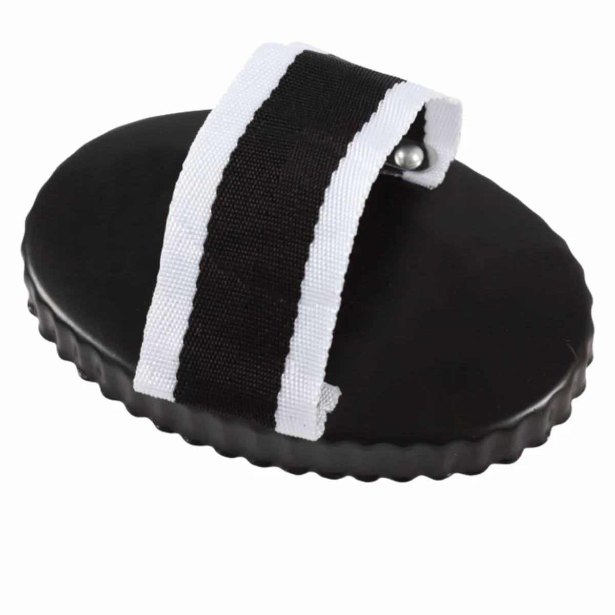 Striglia in metallo con passante per la mano in tessuto.