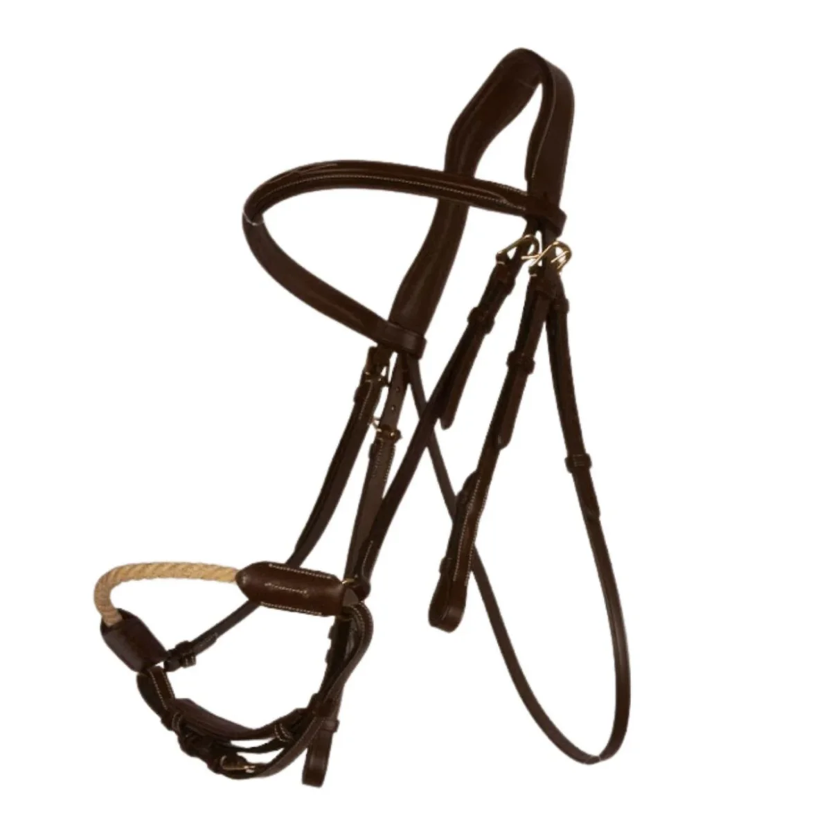 Testiera Mascheroni Selleria realizzata in cuoio di alta qualità con capezzino in corda.