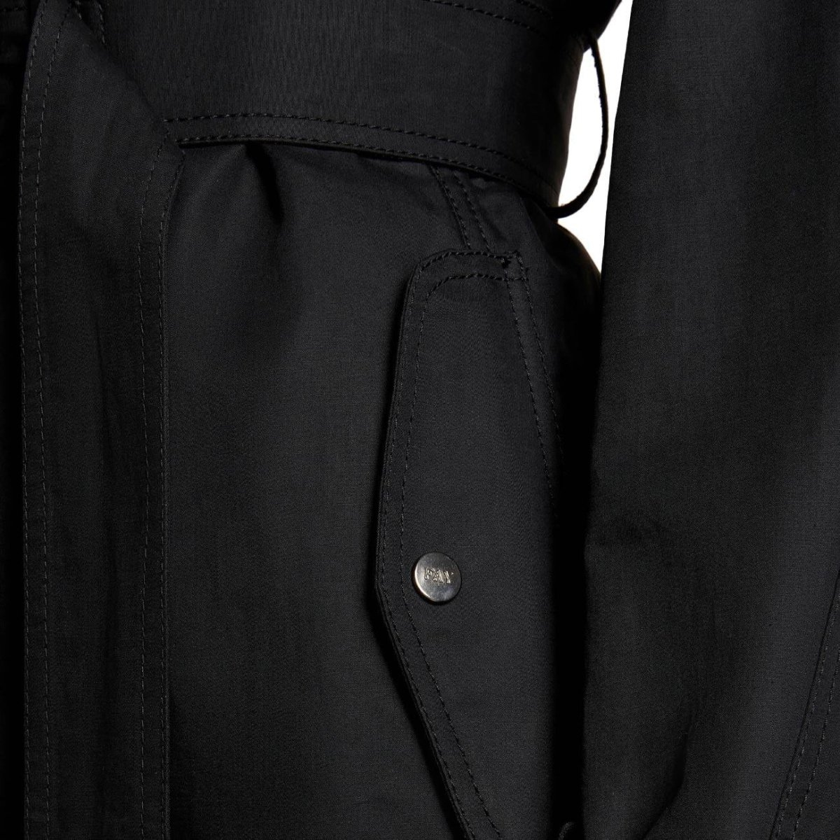 Trench DONNA – Modello: VIRGINIA LUNGO – Colore: NERO Trench monopetto sfoderato realizzato in twill di cotone idrorepellente con cintura in vita. Presenta mostrine sulle spalle e tasche con patta e automatico. La chiusura con zip e automatici invisibili è impreziosita dall’inconfondibile gancio Fay all’altezza del collo. COMPOSIZIONE: 100% Cotone