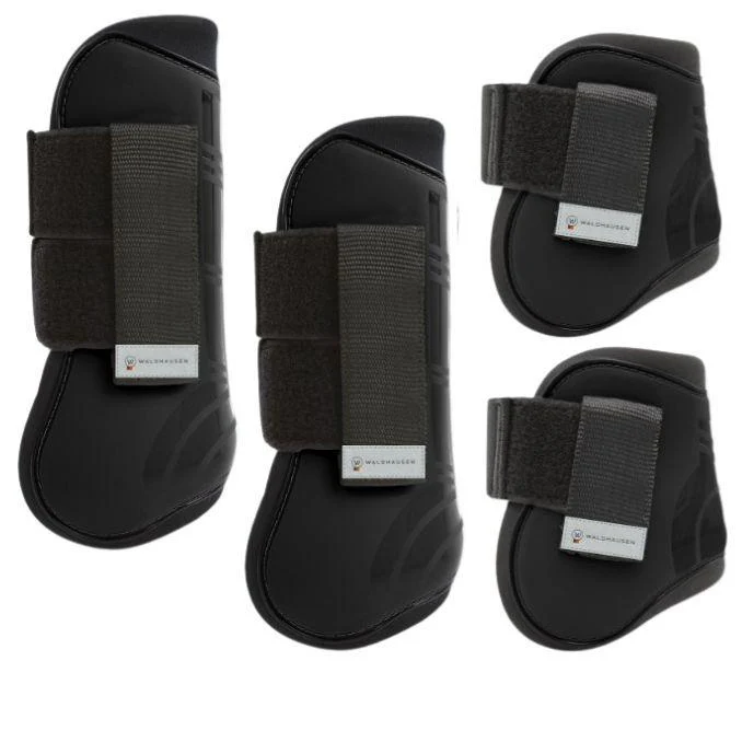 Protezioni per gli arti in materiale morbido e facile da pulire con guscio interno sagomato antiurto; chiusure a strappo robuste per una tenuta affidabile.