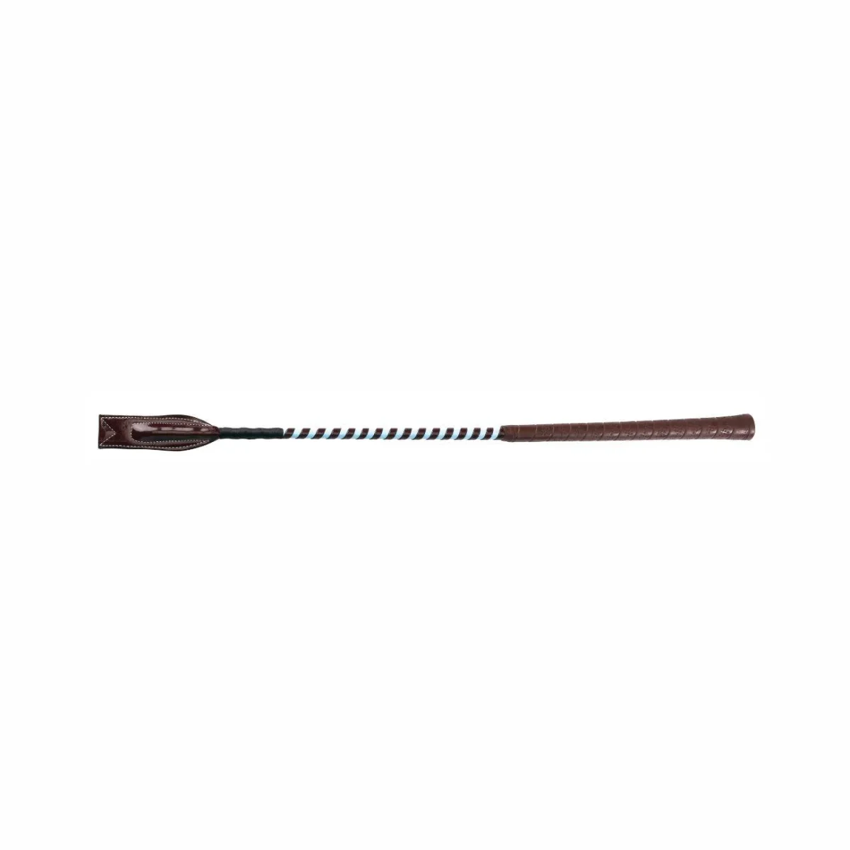 WHIP & GO Jumping è studiato per il salto ostacoli: anima in vetroresina rivestita in nylon intrecciato con terminale ampio in pelle aperta per una risposta immediata e leggibile dal cavallo. L’impugnatura in gomma zigrinata antiscivolo assicura controllo anche in avvicinamento all’ostacolo. È lungo 63 cm e in finitura Lightblue/Choco.