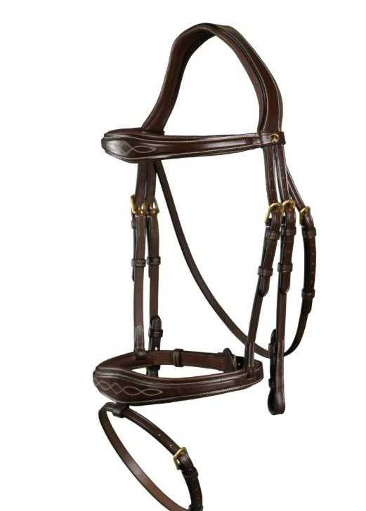 Briglia in cuoio Winner con sopraccapo imbottito e finiture curate e redini con grip in gomma. Le redini rivestite in gomma migliorano la presa senza appesantire la mano, mentre la nasalina sagomata sostiene il contatto in modo stabile e confortevole.