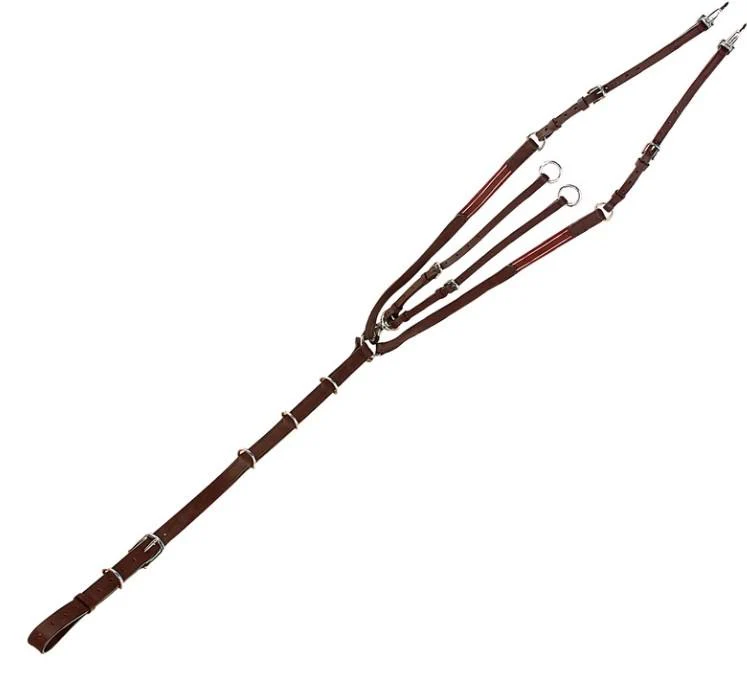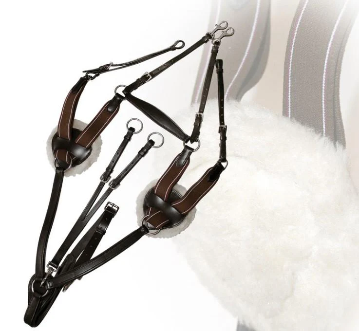 Pettorale in cuoio con inserti elastici nei punti di trazione per stabilizzare la sella senza limitare la libertà di spalla. Fibbieria in inox e martingala staccabile a seconda della variante.