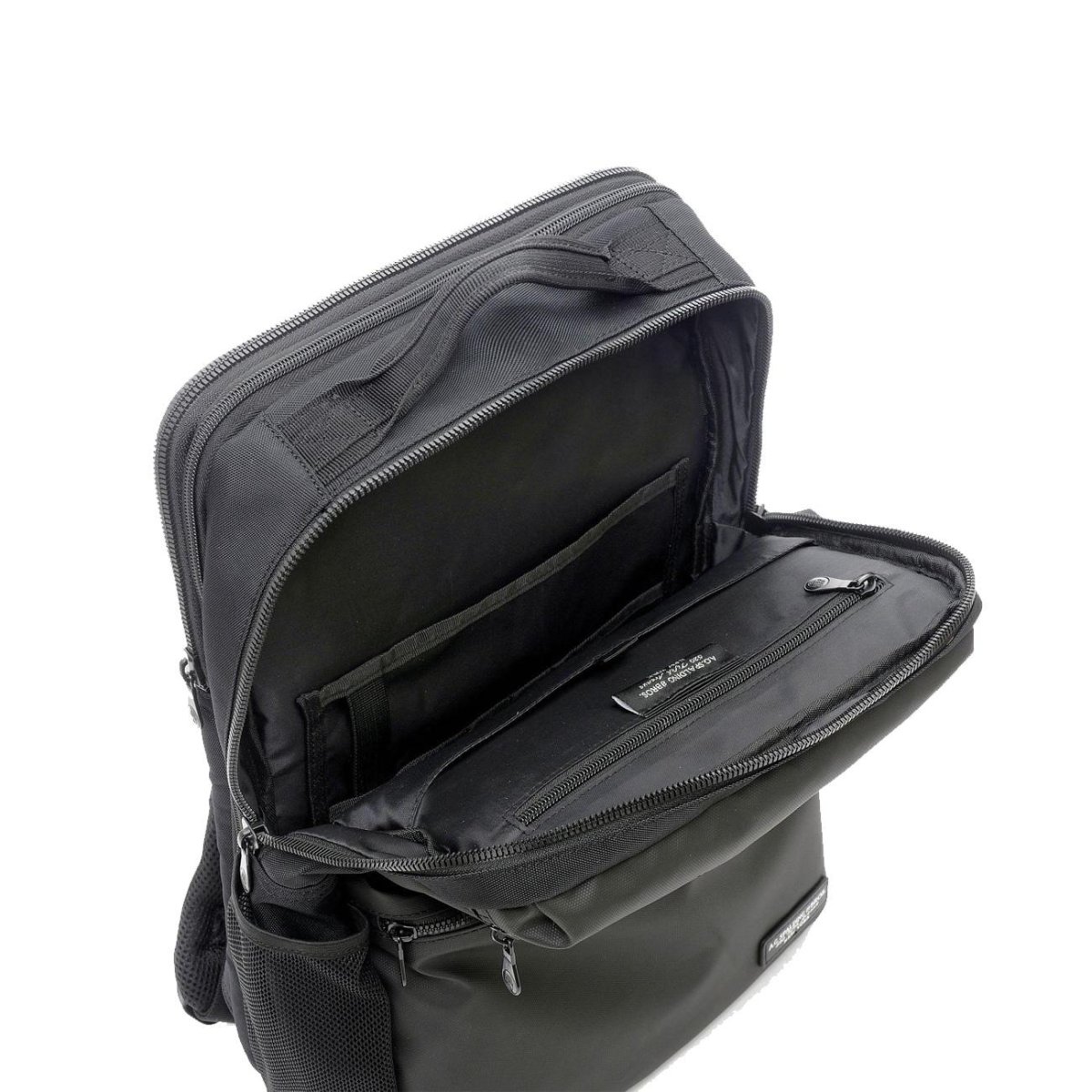 Zaino UNISEX – Modello: ROUND BULLY – Colore: NERO Zaino in nylon gommato con doppia tasca esterna frontale, con organizzazione interna per biglietti da visita, penne e telefono. Ampio scomparto centrale con tasca interna con zip e un’altra tasca aperta. Una zip centrale estendibile aumenta lo spazio di 6 cm. Tasca posteriore imbottita, completamente apribile, per laptop fino a 15 pollici. Retro imbottito con rete traspirante e fascia per il fissaggio su trolley. Spallacci ergonomici imbottiti e regolabili. DIMENSIONI: 29X40X10 cm estendibile 29x40x16 cm