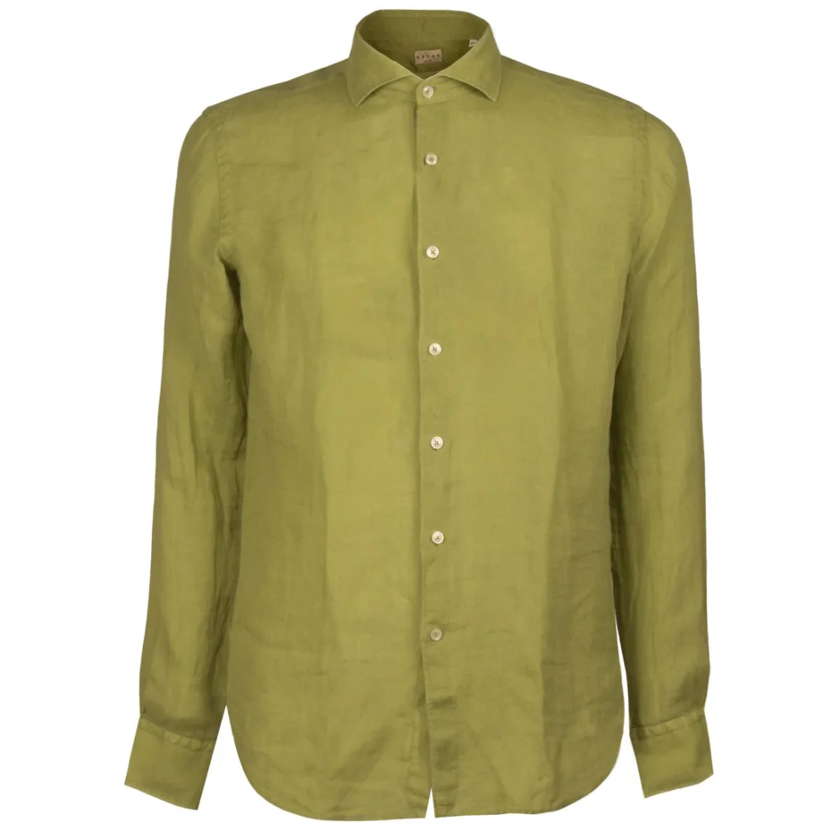 Camicia In Lino Collo Francese Uomo Giallo Lime