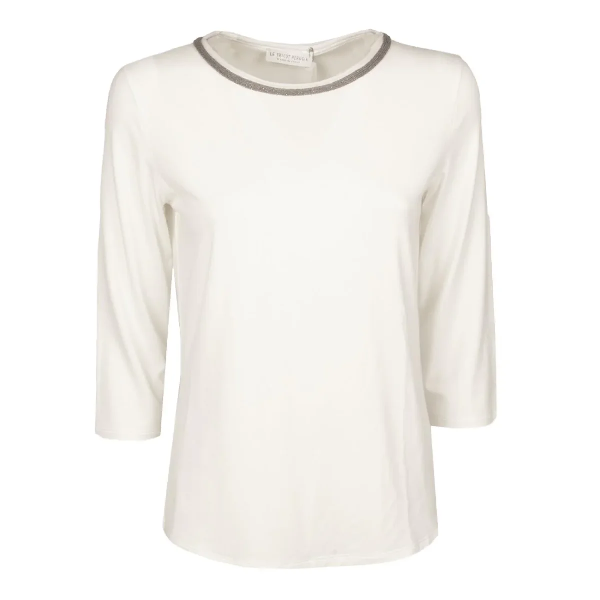 T.Shirt In Viscosa Stretch Donna Off-White & Taupe